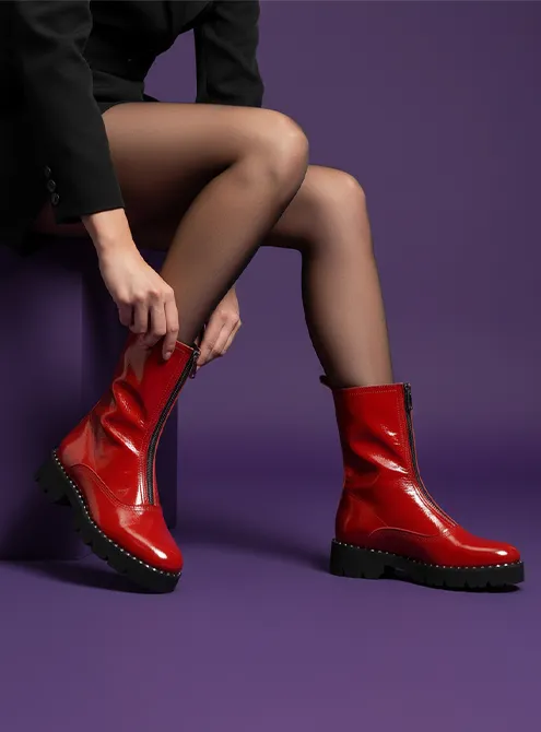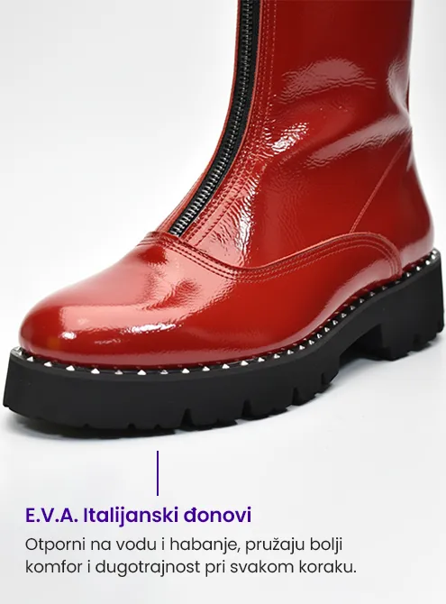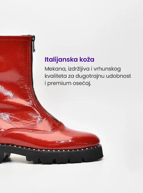 Najudobniji, čuveni RISH ZIP model, napravljen od luksuznog crvenog kožnog nap-laka. Ove poluduboke ZIP čizme su ručno napravljene u porodičnoj radionici Ristić u Topoli.